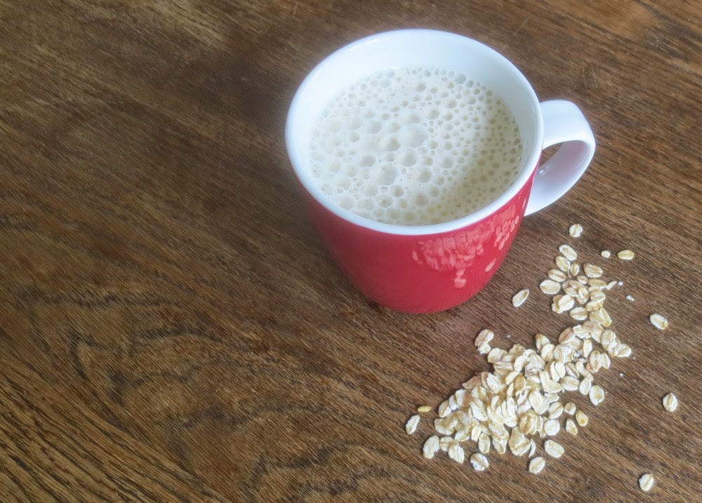 Ich mache es mir einfach und nehme Haferflocken. Feine oder grobe, beides funktioniert. Dafür gibt es verschiedene Rezepte, u.a. mit Aufkochen und durch ein Tuch geben. Das ist mir alles zu kompliziert, ich mixe einfach Haferflocken mit Wasser, so wie ich unten beschreibe.