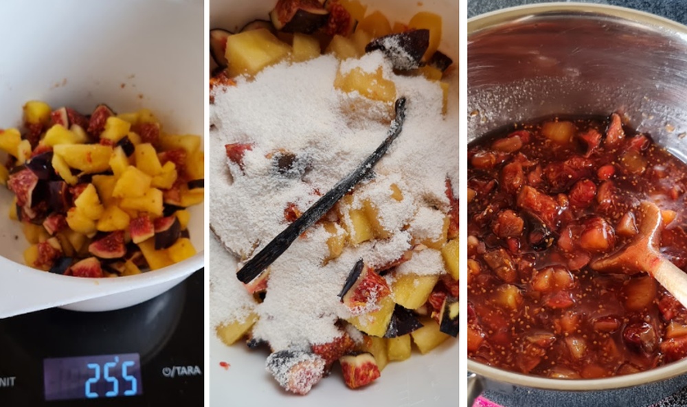 Diese Version hatte ich hergestellt, als es frische Feigen gab und ich zu viel Ananas gekauft hatte. Mit etwas Vanille und einem Schuss Rum schmeckte das so gut, dass das Rezept jetzt auf den Blog darf.